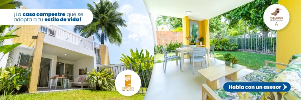 Entre sus principales opciones se destacan nuestras casas campestres de 1 y 2 pisos, como Cisnes del Castillo A, Cisnes del Castillo B, Violetas del Castillo, Canarios del Castillo D y E, Girasoles del Castillo, Tucanes del Castillo y Pellares del Castillo, diseñadas para quienes buscan mayor amplitud, privacidad y una conexión más cercana con su entorno. Por ende, nuestras casas se caracterizan por: